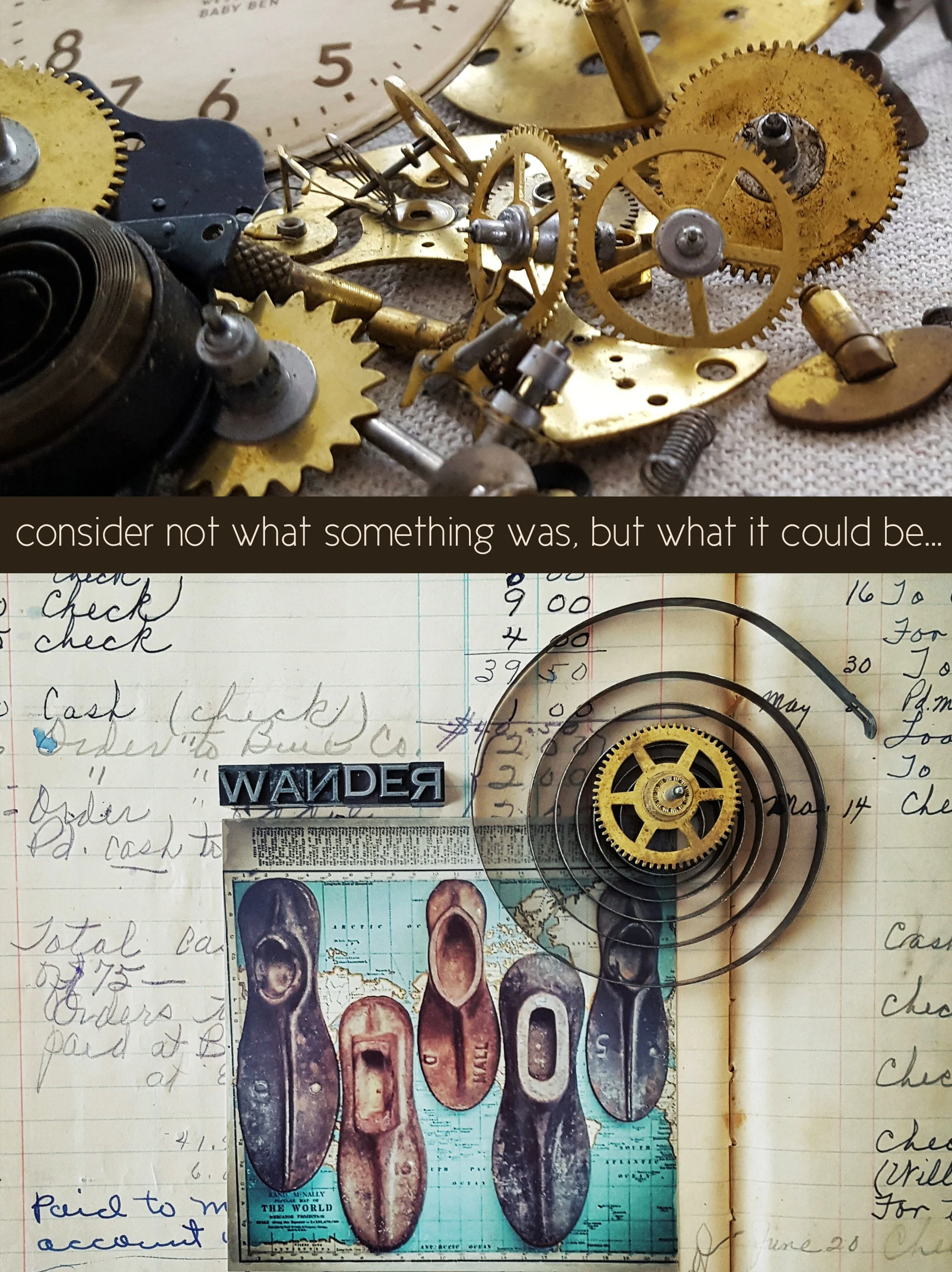I’ve created 10 new collage compositions for this exhibit, utilizing vintage paper ephemera with my own collage painted papers, embellished with found objects. I encourage you to stop in and enjoy the exhibit if you are in the area.