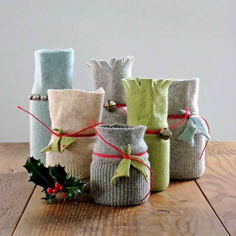 If none of those work for you…here’s an idea…something quick and easily handmade, using items you likely have at the house - empty jars and mismatched wool socks or holey wool sweaters…